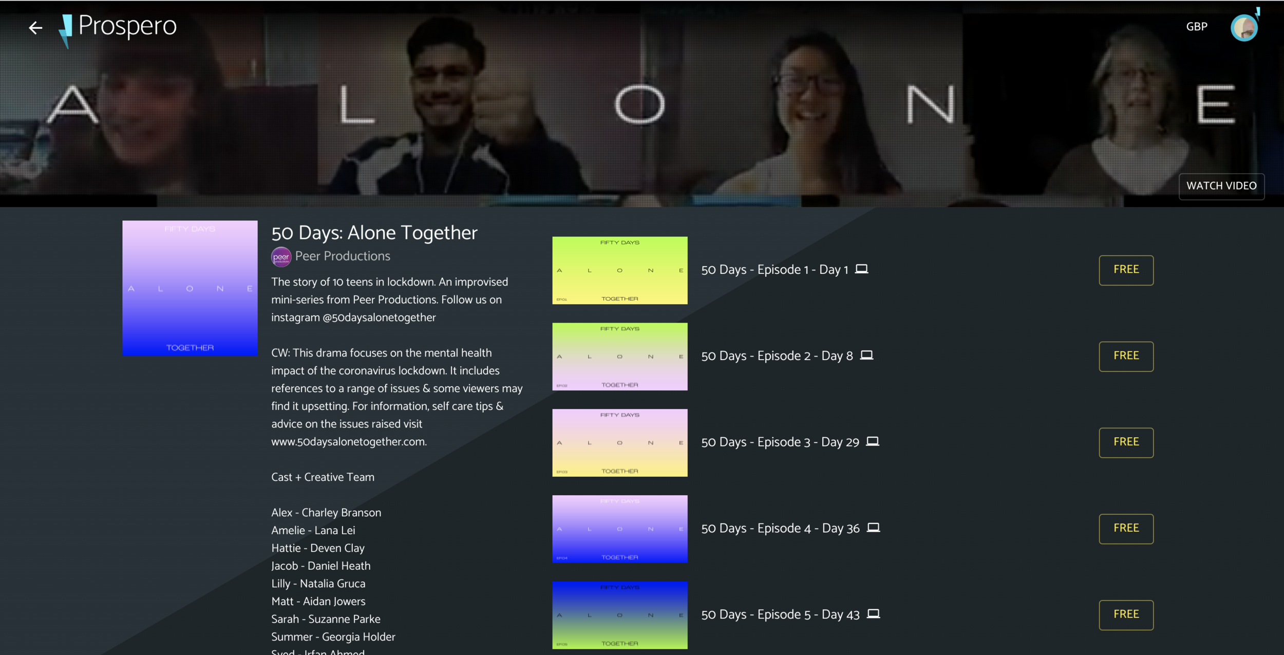 You can stream 50 Days: Alone Together for free from the Prospero Library, where you can find a wealth of other free resources for drama and learning. Check the guidance before sharing with students.